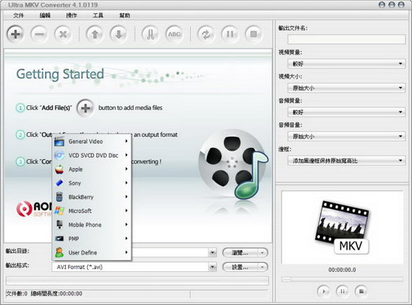 Ultra MKV Converter 可以將 MKV 轉換成數種不同的格式,除了基本的 AVI、WMV、